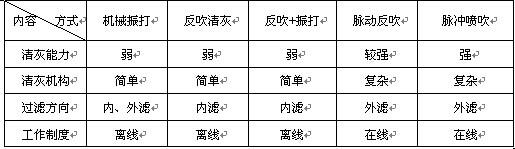 清灰方式是決定袋式除塵器性能的一個重要因素。以清灰方式對袋式除塵器進行分類,基本型式主要有:機械振打清灰方式、反吹清灰方式反吹、振打聯合清灰方式、脈動反吹清灰方式、脈沖噴吹清灰方式。低壓脈沖袋式除塵器屬于脈沖噴吹清灰方式。